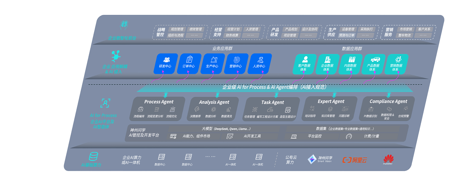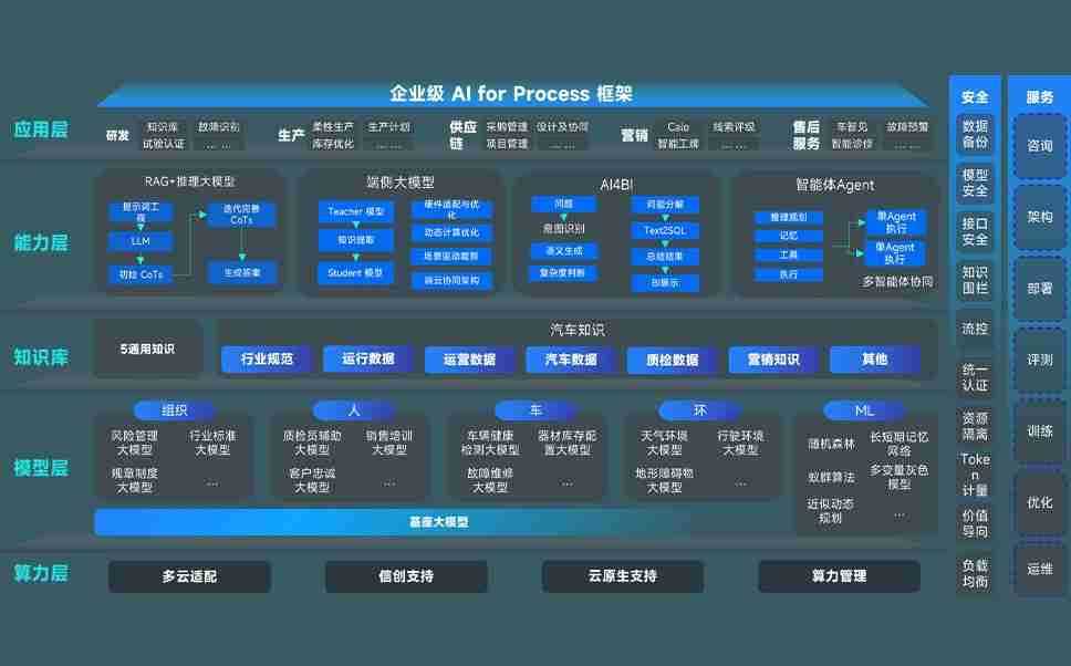 端到端的一站式AI工作空间深度融合了从企业战略规划到日常经营的全流程业务板块,,,,定向解决车企内部领域多、、、部门多、、、、链条长、、场景碎片化等难题,,,支持车企快速构建以AI为核心的生产力写作体系,,,,实现任务执行与AI能力的无缝集成与交互
